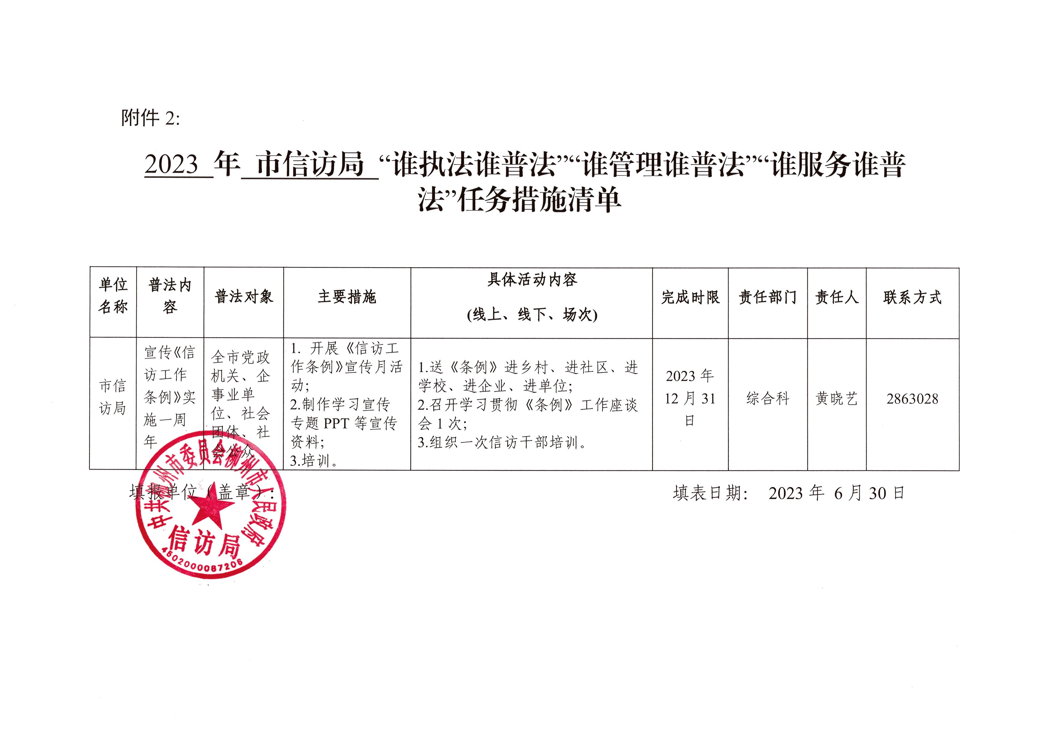 2023 年 市信访局 “谁执法谁普法”“谁管理谁普法”“谁服务谁普法”任务措施清单