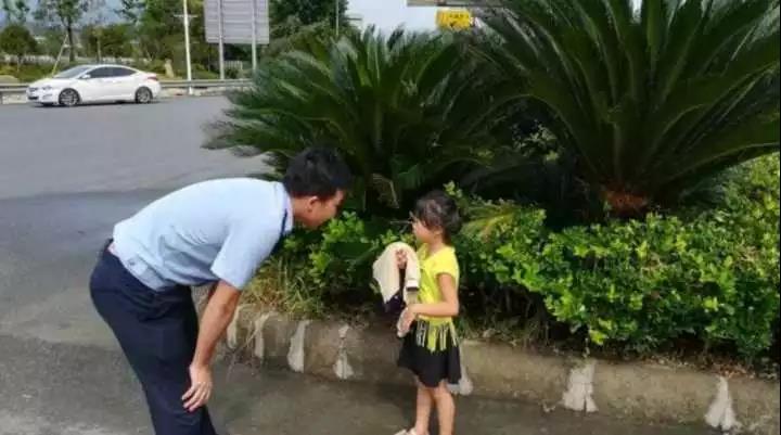 把警车开到小女孩身边